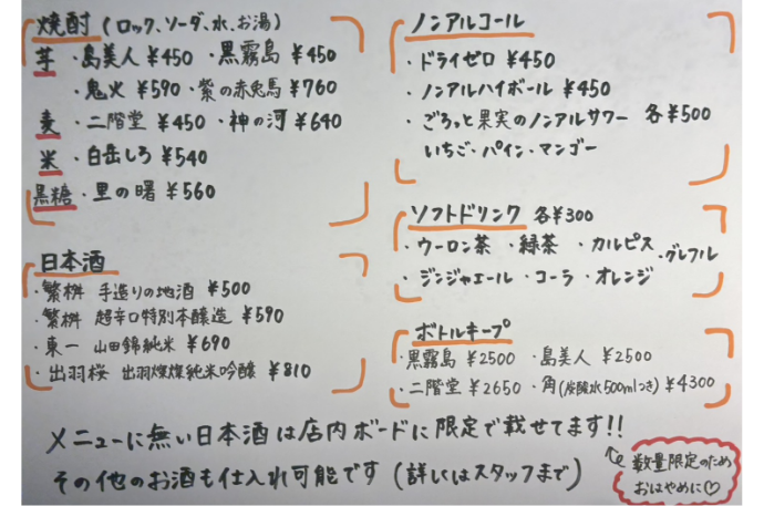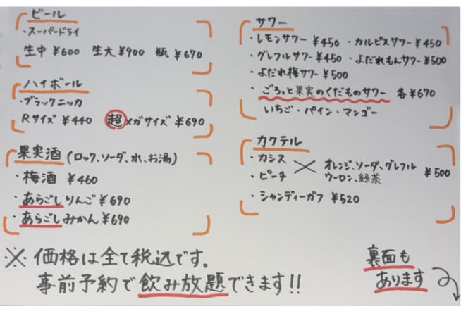 | 営業時間 | 平日 17:00〜23:00 土日祝 16:00〜23:00 |